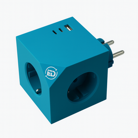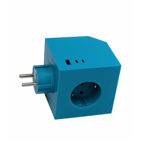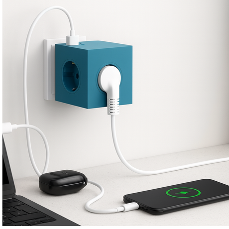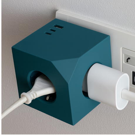 Regleta de enchufe múltiple tipo cubo, 3680W 2 puertos USB-C, USB-A, 3 tomas Schuko, verde.