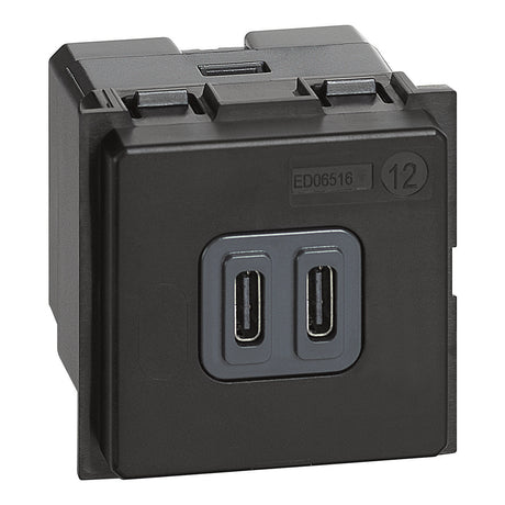Base 2P+T+USB - cargador USB Tipo C integrado - Dark - 2 módulos