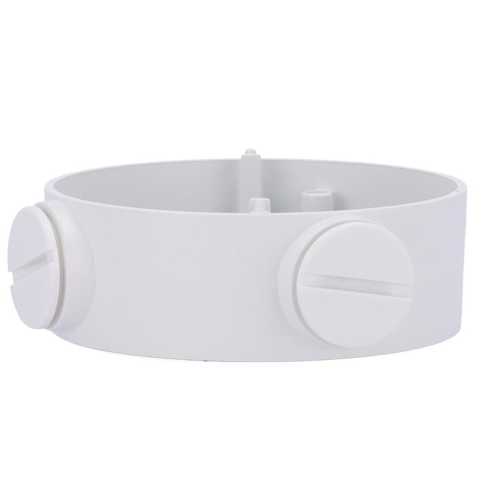Permite alojar el alimentador, el cableado y los accesorios de la instalación en su interior. Dispone de múltiples orificios para instalación de diferentes tipos de cámaras domo o bullet. Fijación a pared o techo a través de 4 tornillos. La cámara queda instalada en la cubierta desmontable del soporte. Permite el paso interno del cableado.