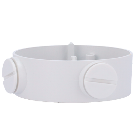 Caja de conexiones para cámaras bullet, apto para uso exterior. Instalación en techo o pared, color blanco con pasador de cables