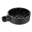 Caja de conexiones para cámaras domo para uso exterior. Instalación en techo o pared, color negro con pasador de cables