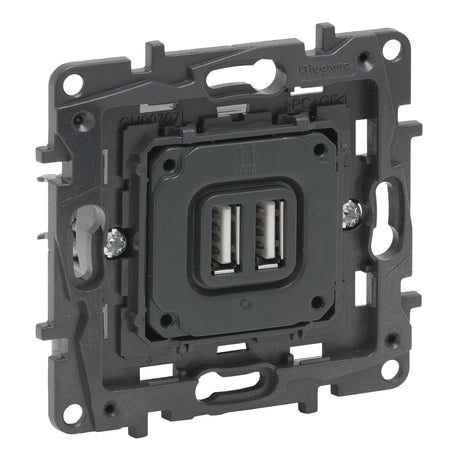 Frontal - Base cargador doble USB A +A - Blanco mate