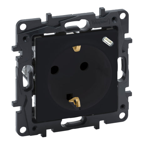 Frontal - Base de corriente 2P+T - con tapa - Negro mate