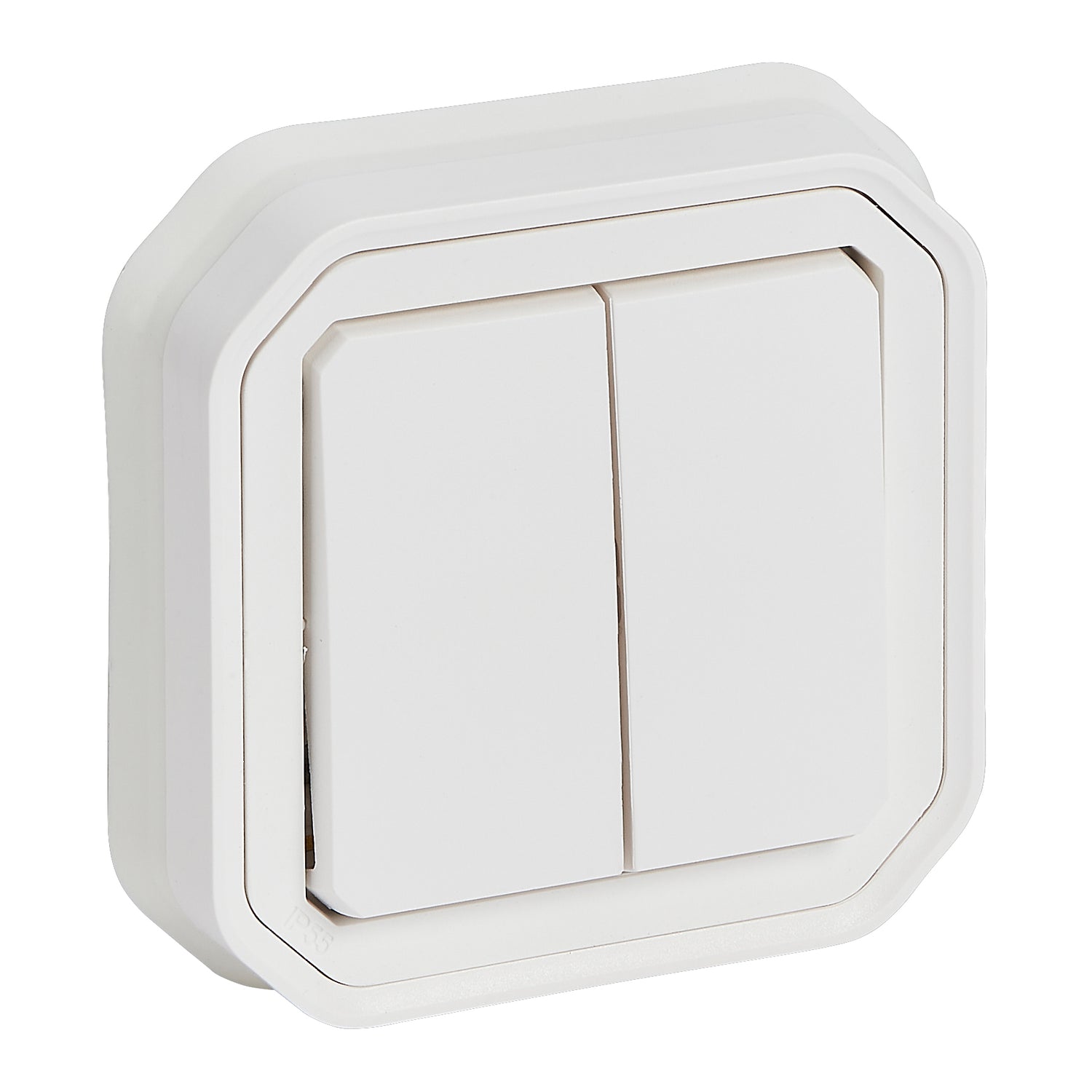 Conmutador doble Plexo monobloc empotrar - 10AX - Blanco