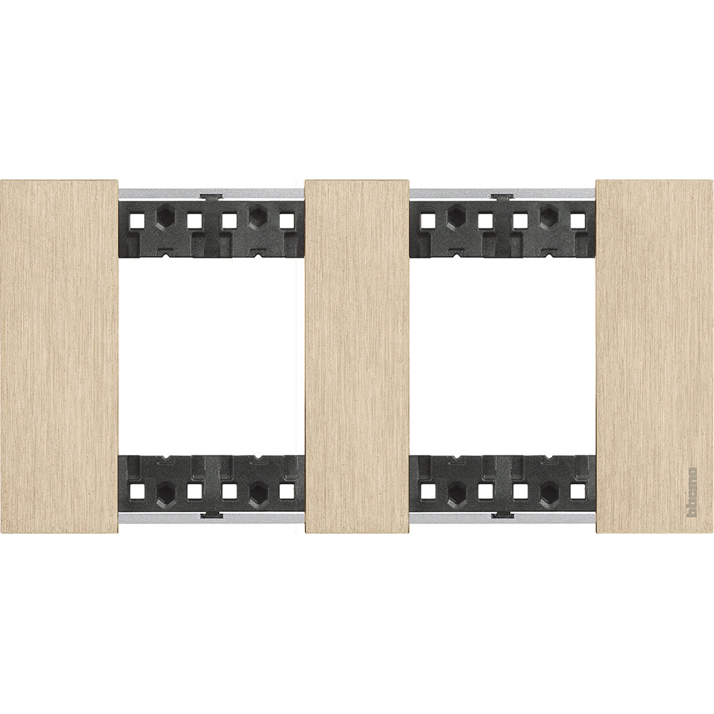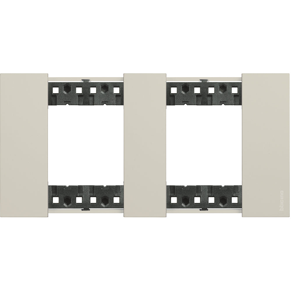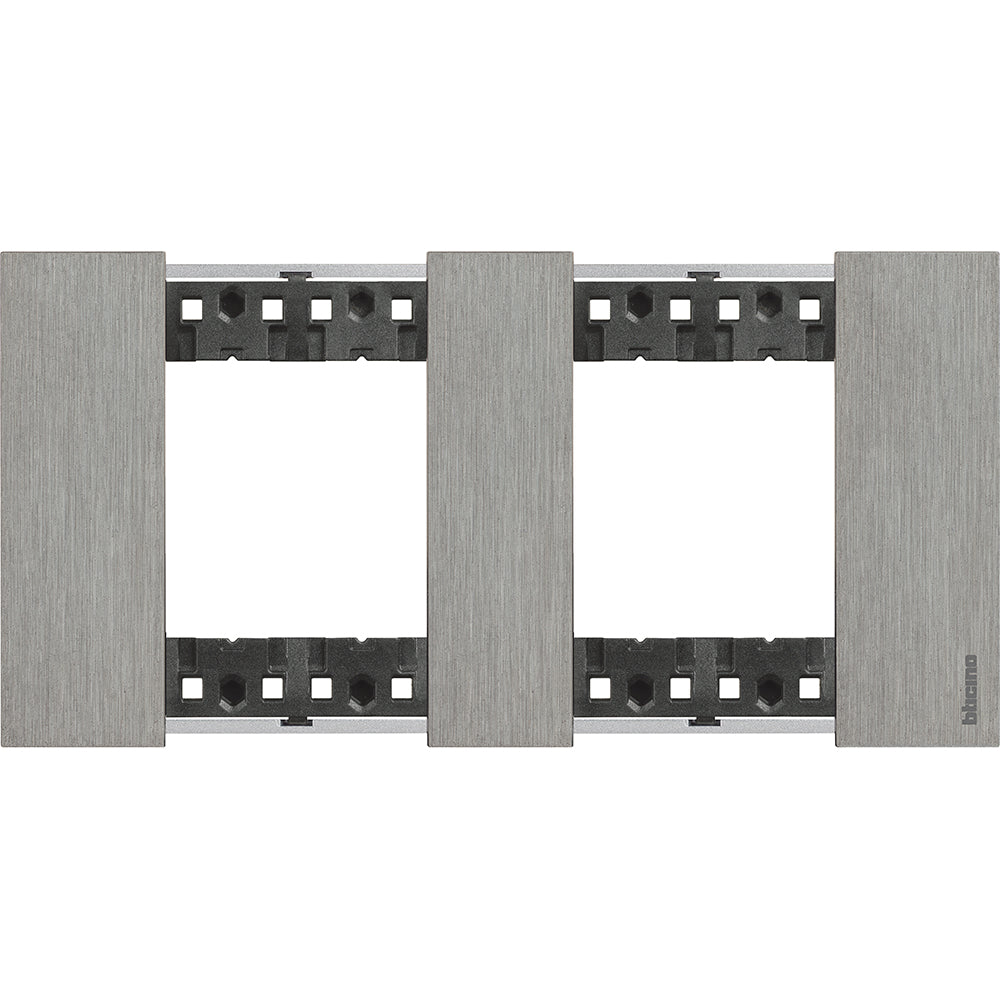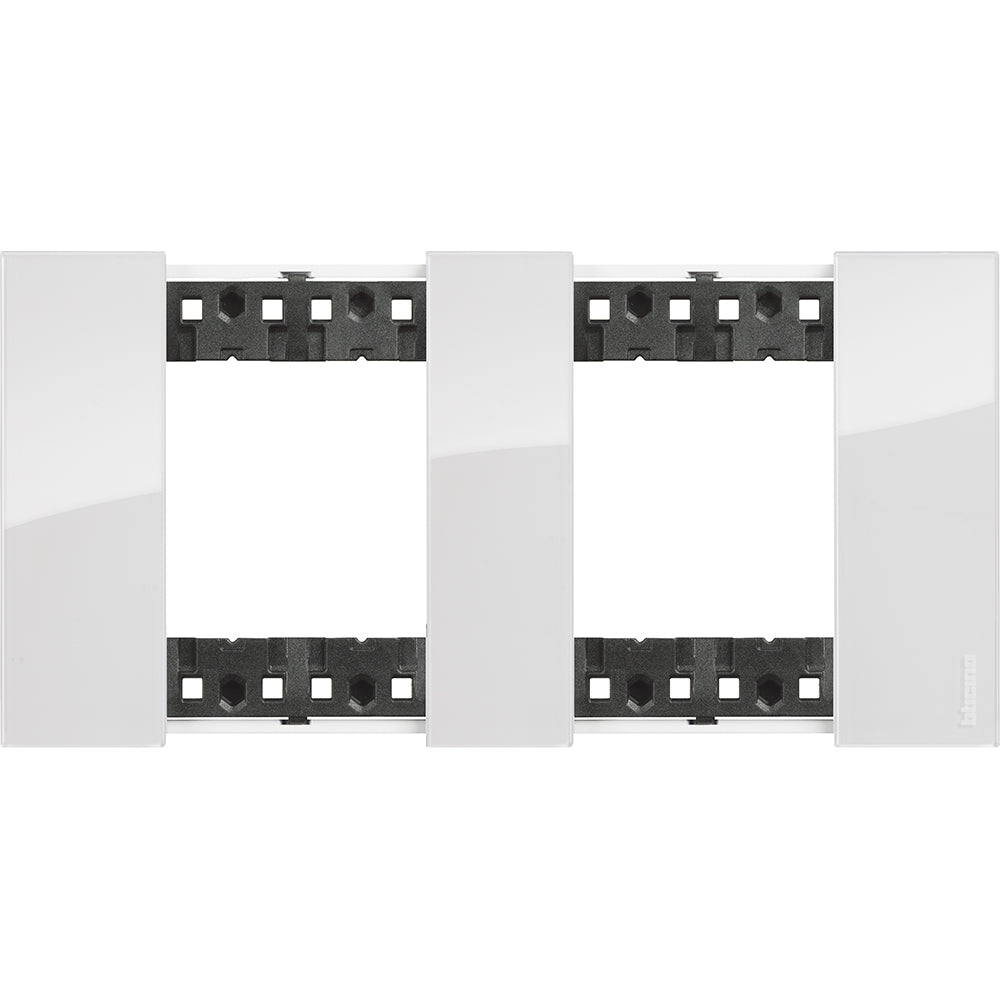 Placa embellecedora de 2 elementos de 2 módulos, ideal para integrar múltiples funciones en un solo espacio, con un diseño elegante y moderno.