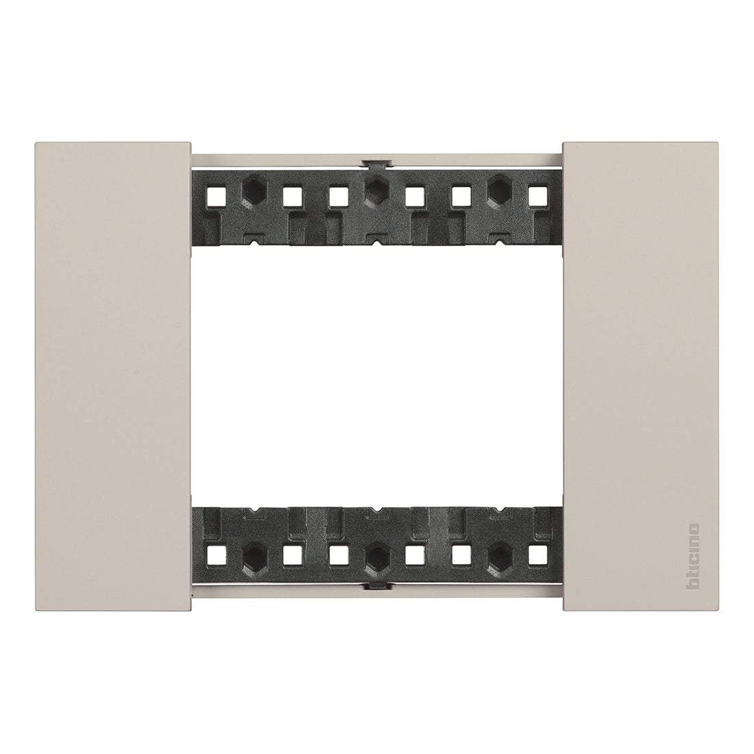 Placa embellecedora de 3 módulos, ideal para integrar múltiples dispositivos en un solo espacio, ofreciendo un acabado elegante y funcional.