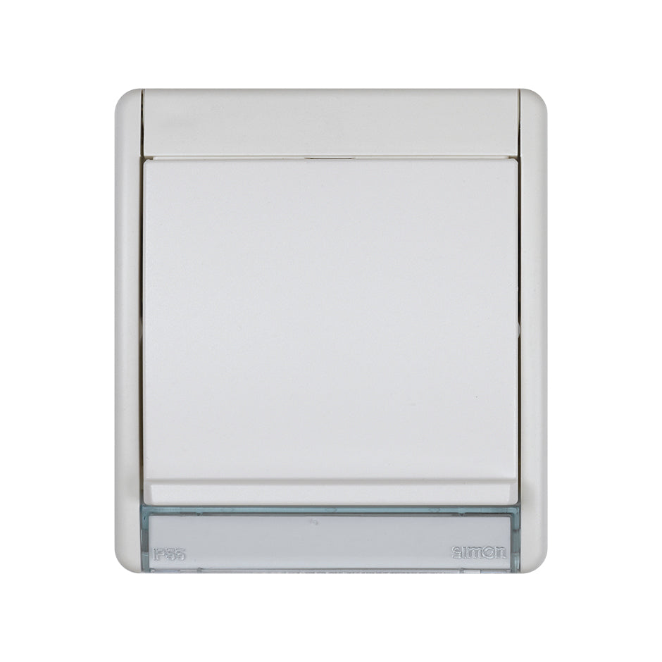 Marco con tapa abatible blanco Simon Aqua, ideal para instalaciones modernas, que combina funcionalidad y diseño elegante en un solo módulo.