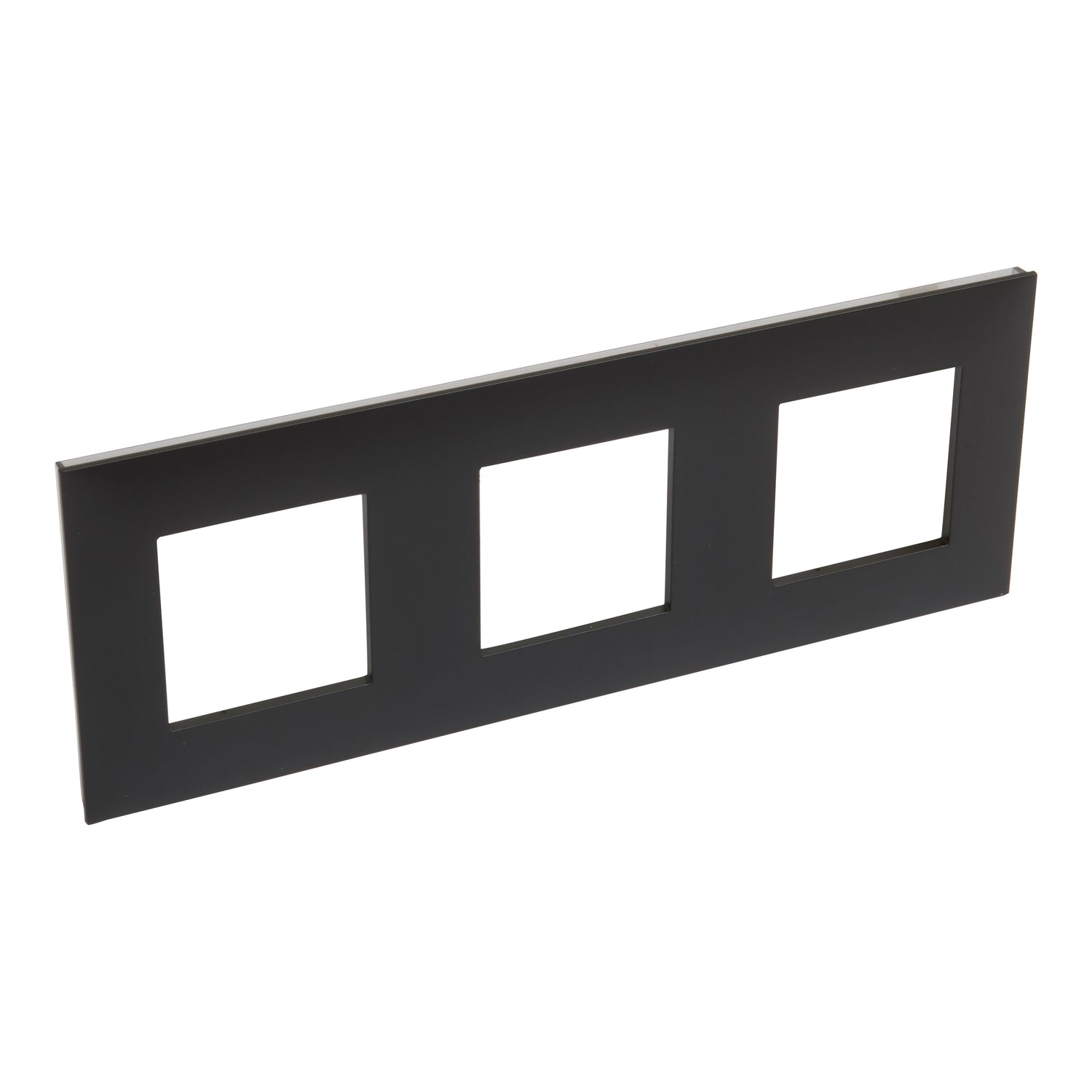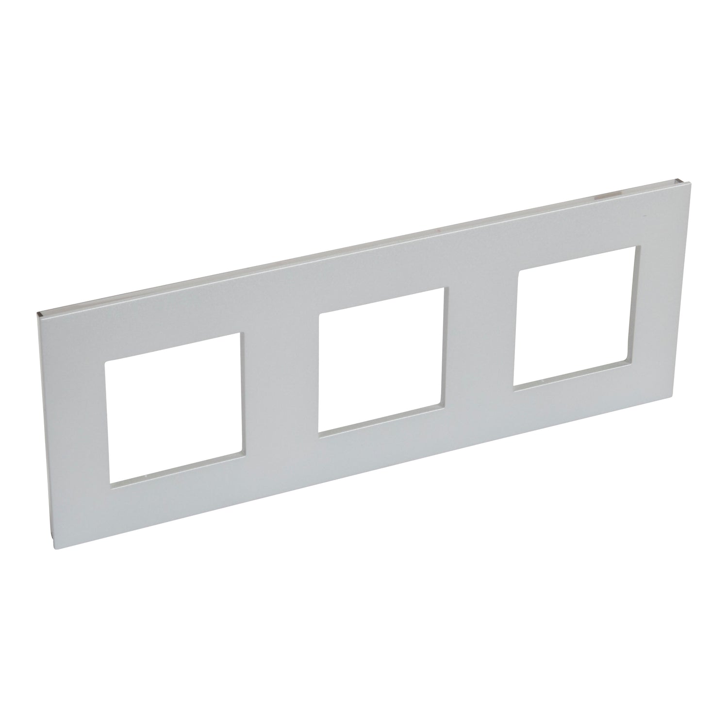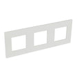 Placa embellecedora de 3 elementos, ideal para integrar múltiples funciones en un solo módulo, ofreciendo un acabado estético y funcional.
