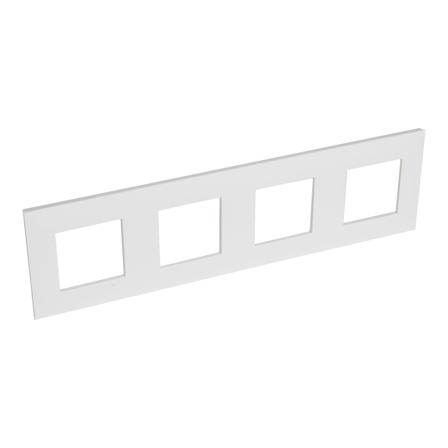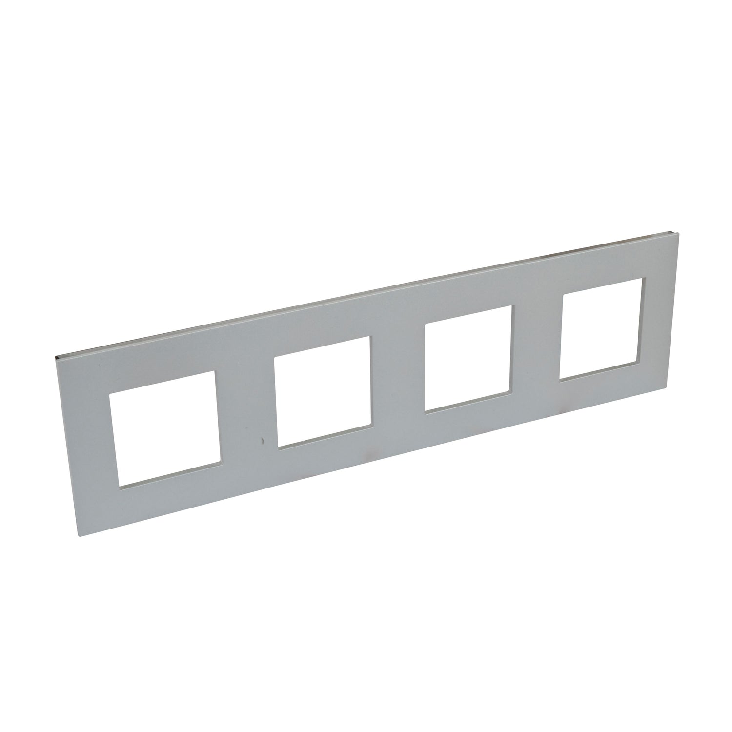 Placa embellecedora de 4 elementos, ideal para integrar múltiples funciones en un solo módulo, ofreciendo un acabado elegante y funcional.