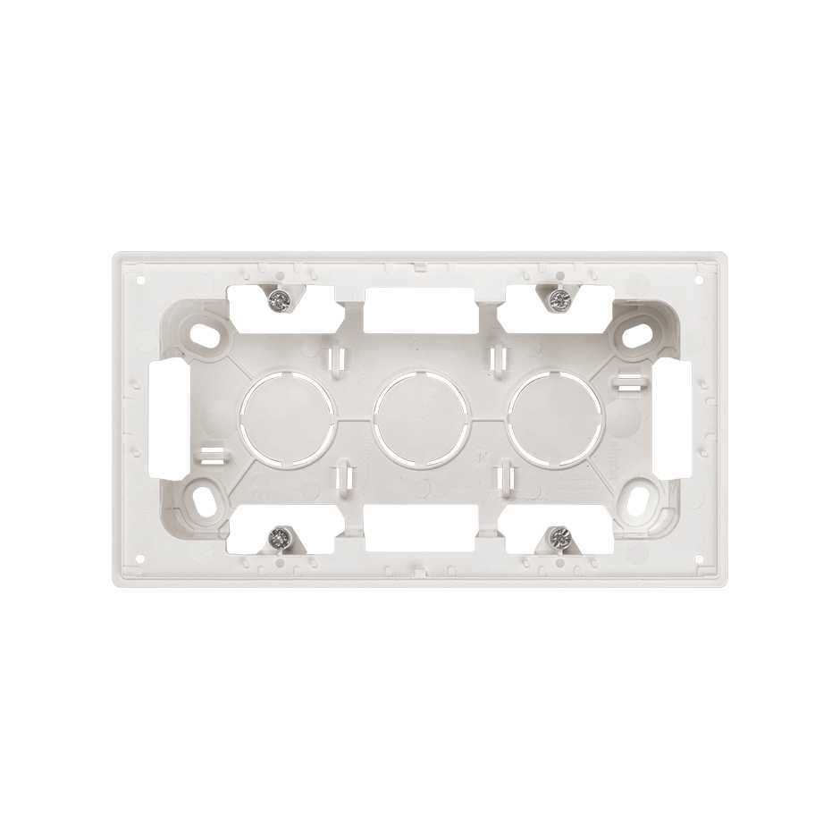 Caja de superficie para 2 elementos en color blanco, ideal para instalaciones eléctricas, que permite una fácil conexión y organización de dispositivos.