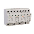 Protector de sobretensiones transitorias Tipo 1 y 2, con capacidad de descarga de 20 kA (T1Iimp) y 50 kA (T2Imax), diseñado para sistemas de hasta 385 VAC.