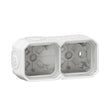 Caja con membranas Plexo modular de 2 elementos, ideal para instalaciones eléctricas, que permite la integración de diferentes dispositivos en un diseño compacto y funcional.
