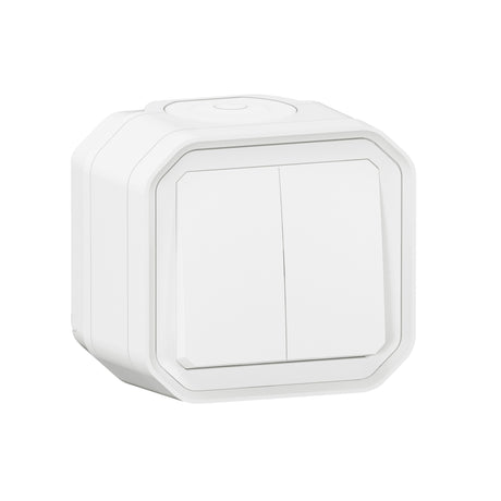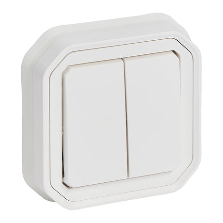 Conmutador doble Plexo monobloc superficie - 10AX - Blanco