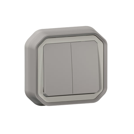 Conmutador doble Plexo monobloc empotrar - 10AX - Gris