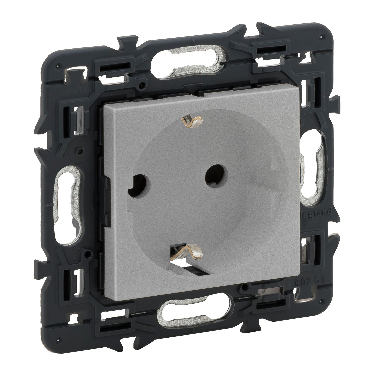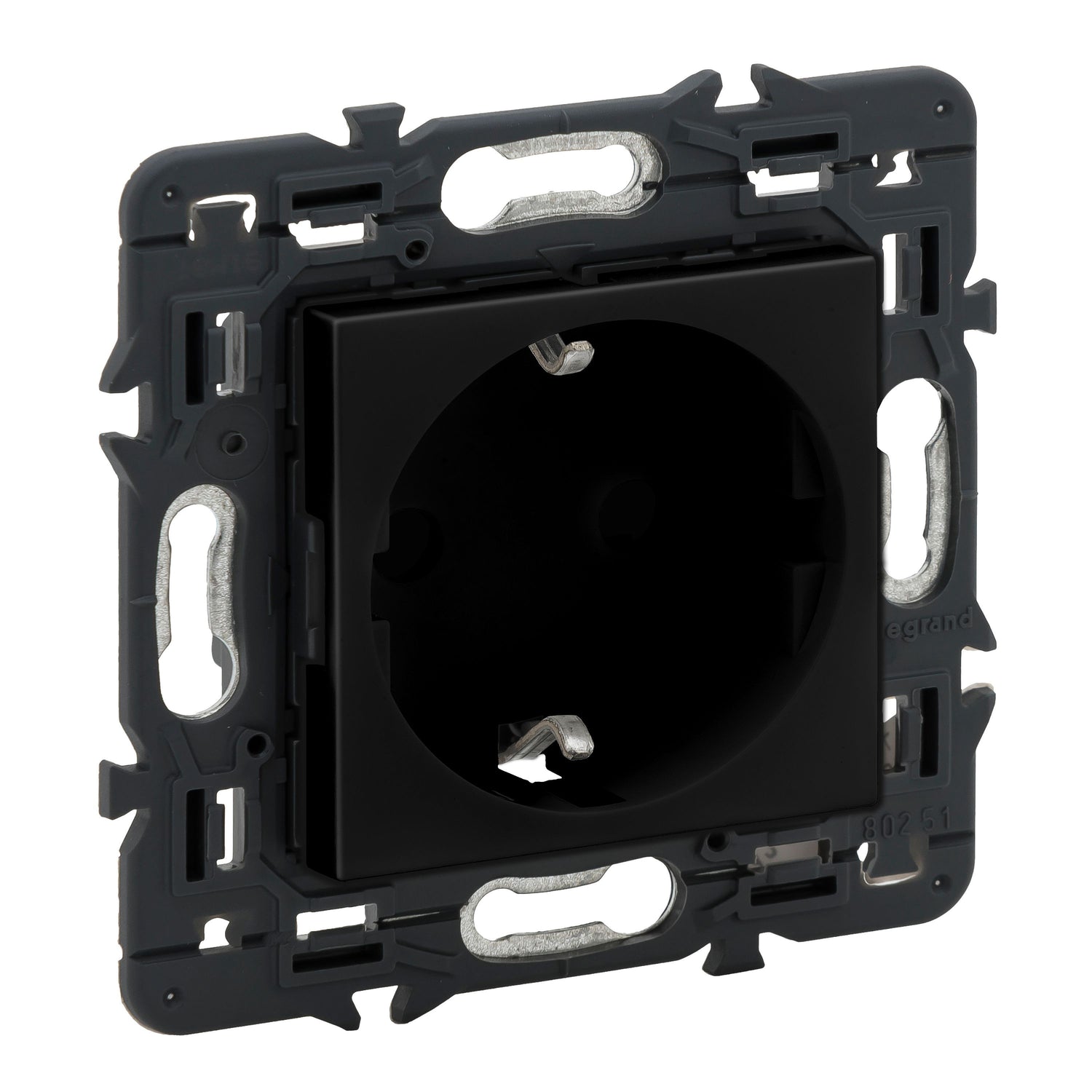 Base de corriente 2P+T con obturadores, ideal para instalaciones eléctricas de 10/16A y 230V~, que garantiza seguridad y protección en el uso diario.