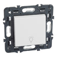 Pulsador con símbolo de lámpara, 6A y 230V~, en color blanco, ideal para el control de iluminación en cualquier espacio.