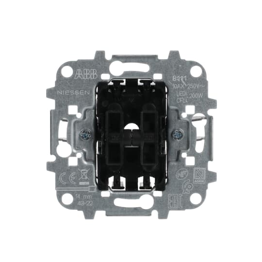 Tipo de montaje: Montado empotrado (escayola), Composición: Elemento básico, Tipo de operación: Balancín / botón, Método de conexión: Abrazadera de enchufe, Tipo de fijación: Fijación mediante rosca, Tipo de circuito: Interruptor en serie, Adecuado para el grado de protección (IP): IP20, Voltaje nominal: 250V, Sin halógenos, Con placa de montaje, Corriente nominal (medida): 10A, Número de balancines: 2, Corriente de conmutación para lámparas fluorescentes: 10AX.