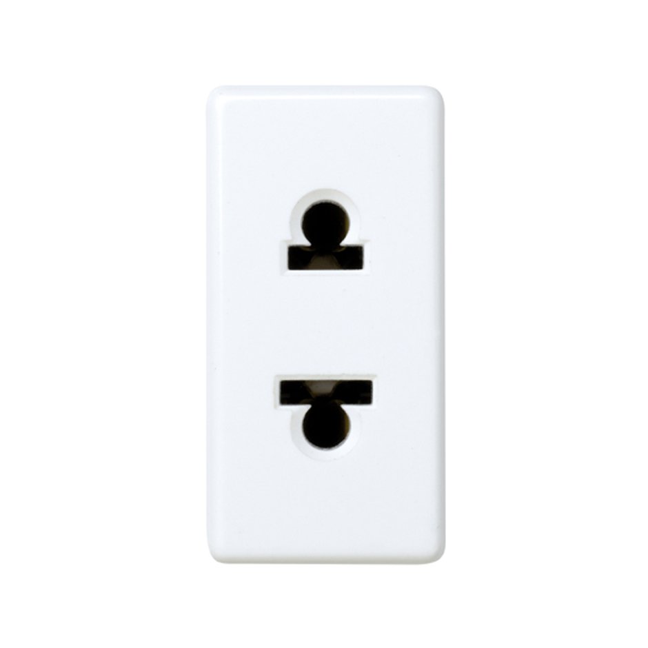 Base de enchufe bipolar mixta (europea - americana) de 16 A y 250V en color blanco. También está disponible en color marfil.El proceso de embornamiento se realiza a tornillo. La sección de cable que admite es de 2,5 mm y el pelado de cable necesario para realizar con éxito la conexión es de 15 mm.El tipo de funcionamiento es por inserción y las tapas incluyen la función de protección infantil. No incluye ningún tipo de grabado en su superficie.Es de módulo ancho y forma cuadrada de dimensiones 45 x 45 mm. Está fabricado por componentes metálicos con aislamiento libre de halógenos y embellecedor termoplástico.Pertenece a la gama de tomas de corriente de la serie Simon 27 Play. Para llevar a cabo correctamente su instalación, es necesario el uso de una caja universal de empotrar o, en su defecto, un zócalo de superficie.