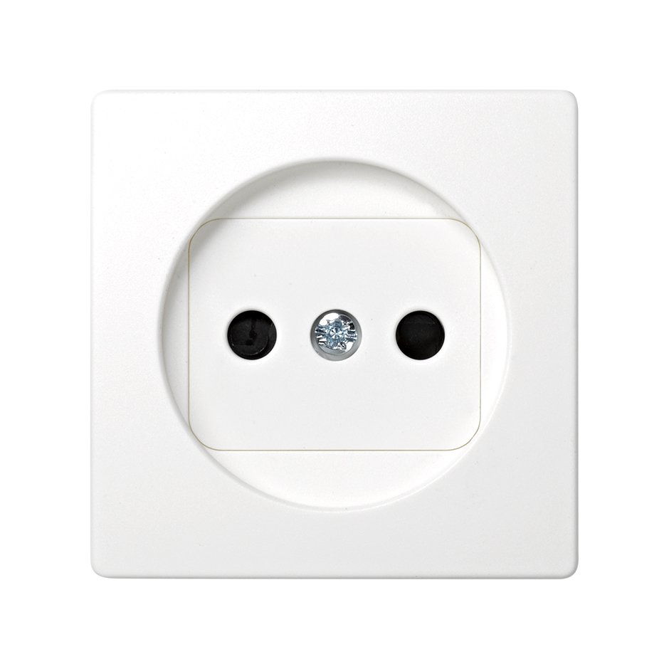 Tapa con dispositivo de seguridad para la base de enchufe bipolar blanco de la serie Simon 73 Loft, una serie que destaca, fundamentalmente, por su collarín transparente y es que gracias a esta sencilla, pero efectiva terminación, se consigue una sensación visual de menor profundidad.