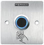 Pulsador sin contacto de diseño elegante con iluminación azul en standby y verde en detección.