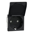 Base Schuko con tapa, ideal para proteger conexiones eléctricas, diseñada para una instalación sencilla y segura en cualquier espacio.