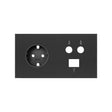 Kit front para 2 elementos con 1 base de enchufe schuko, 1 toma R-TV+SAT única con 1 conector RJ45 6 UTP negro mate Simon 100