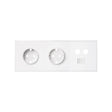 Kit front para 3 elementos con 2 bases de enchufe schuko y 1 toma R-TV+SAT única con 1 conector RJ45. Se trata de un producto en un blanco mate que además sirve como un elemento decorativo sutil. Es una pieza que, por su acabado elegante, encaja en todo tipo de ambientes, ocupa 3 elementos, siendo un producto estándar de la gama 100 de Simon.