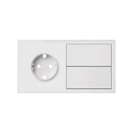 Kit front horizontal para 2 elementos con 1 base de enchufe schuko y 1 tecla individual blanco mate Simon 100