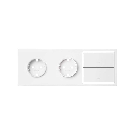 Kit front para 3 elementos con 2 bases enchufe schuko y 2 teclas blanco mate Simon 100