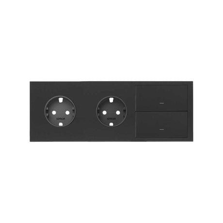 Kit front para 3 elementos con 2 bases enchufe schuko y 2 teclas negro mate Simon 100