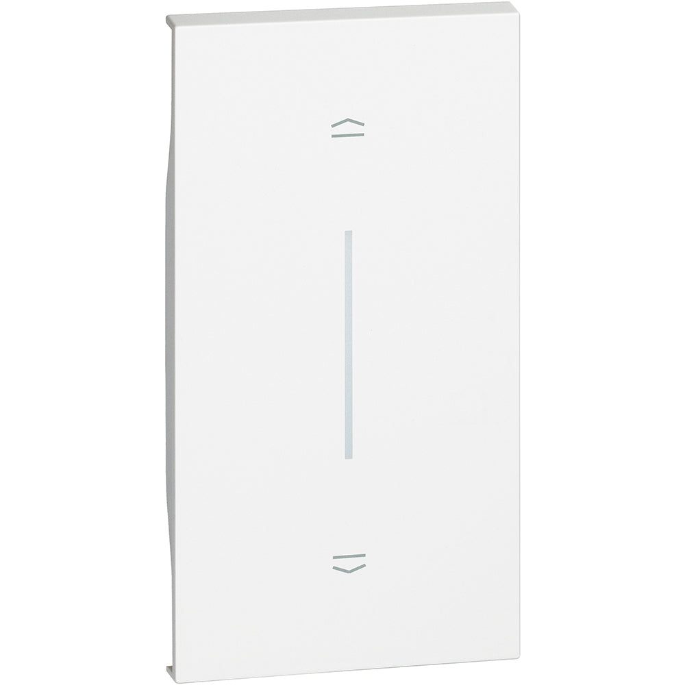 Tecla de persianas en color blanco, de 2 módulos, ideal para el control eficiente de la luz y la privacidad en cualquier espacio.