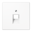 Placa central para toma telefónica y datos en color blanco alpino, compatible con múltiples tomas y fabricada en termoplástico extrabrillante y a prueba de golpes.