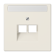 Placa de teléfono de 2 tomas en color blanco marfil, fabricada en termoplástico extrabrillante, compatible con diversas tomas telefónicas y RJ45.
