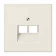 Placa modular de 2 tomas para conexiones telefónicas y de red, en color blanco marfil, fabricada en termoplástico extrabrillante y compatible con diversas tomas de marcas reconocidas.