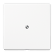 Placa de salida cable LS en duroplástico brillante blanco alpino, con soporte y fijación por tornillo, ideal para una instalación segura y estética.
