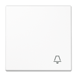 Tecla con símbolo Timbre LS en color blanco alpino, fabricada en duroplástico brillante y resistente al rayado, ideal para mecanismos iluminables con junta estanca y marco IP 44.