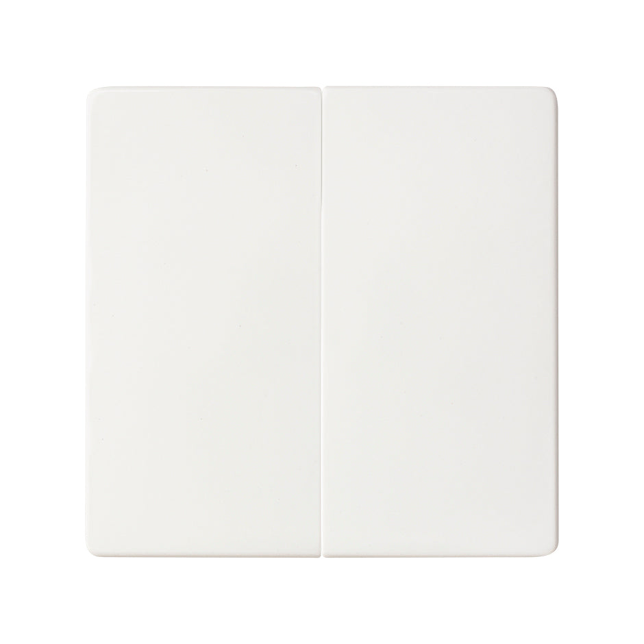Tecla doble para mecanismos de mando en acabado blanco mate, diseñada para un control eficiente y elegante de la iluminación y otros dispositivos en el hogar.