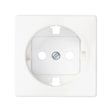 Tapa con dispositivo de seguridad para base de enchufe Schuko en acabado blanco mate, diseñada para garantizar la protección y seguridad en instalaciones eléctricas.