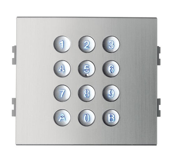 Teclado tipo telefónico que permite la apertura de la puerta al introducir un código de hasta 6 dígitos previamente programado.